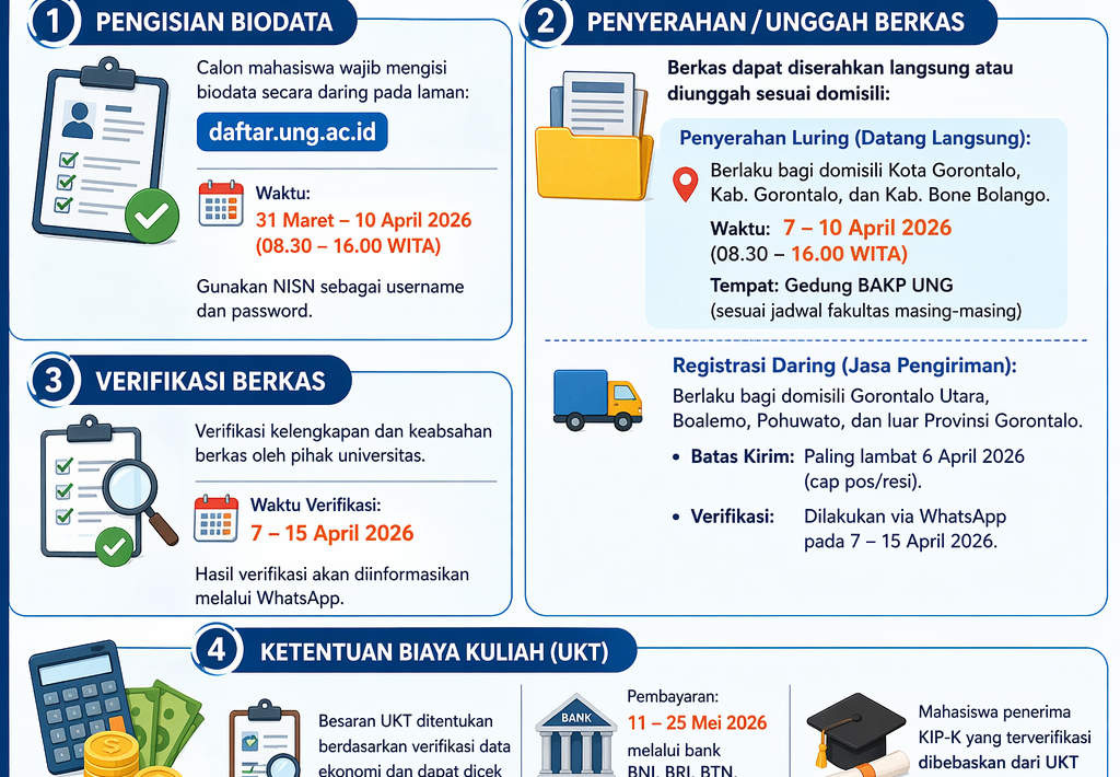 Penyesuaian Pola Kerja FH UNG 2026 Fakultas Hukum UNG Sistem Informasi Penyesuaian Pola Kerja Implementasi Penyesuaian Pola Kerja dan Digitalisasi Layanan di FH UNG Menindaklanjuti Surat Edaran Rektor Nomor 2522 Tahun 2026, Fakultas Hukum Universitas Negeri Gorontalo (FH UNG) di bawah arahan Dekan Dr. Weny […]