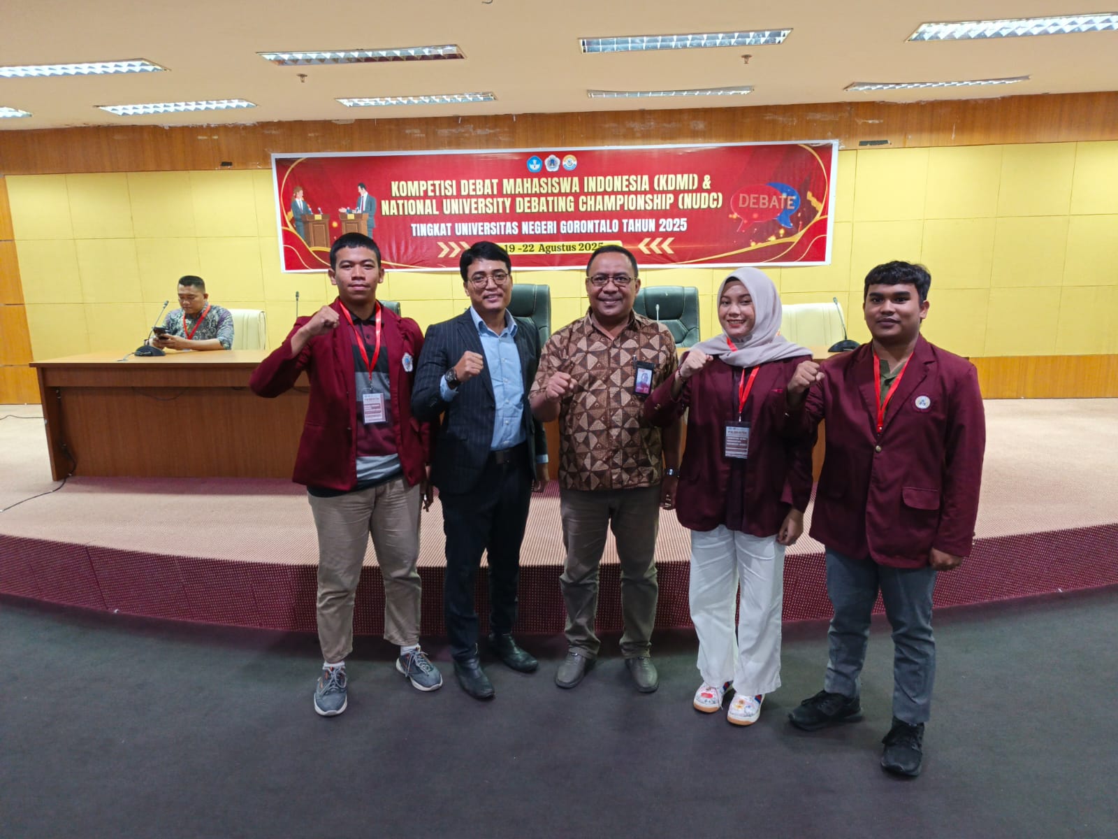 Fakultas Hukum Universitas Negeri Gorontalo (FH UNG) resmi mengutus mahasiswa terbaiknya untuk berpartisipasi dalam Kompetisi Debat Mahasiswa Indonesia (KDMI) dan National University Debating Championship (NUDC) tingkat Universitas Negeri Gorontalo tahun 2025. Kegiatan tersebut berlangsung pada 19–20 Agustus 2025 di UPA Bahasa UNG, dengan dihadiri perwakilan mahasiswa dari berbagai fakultas.