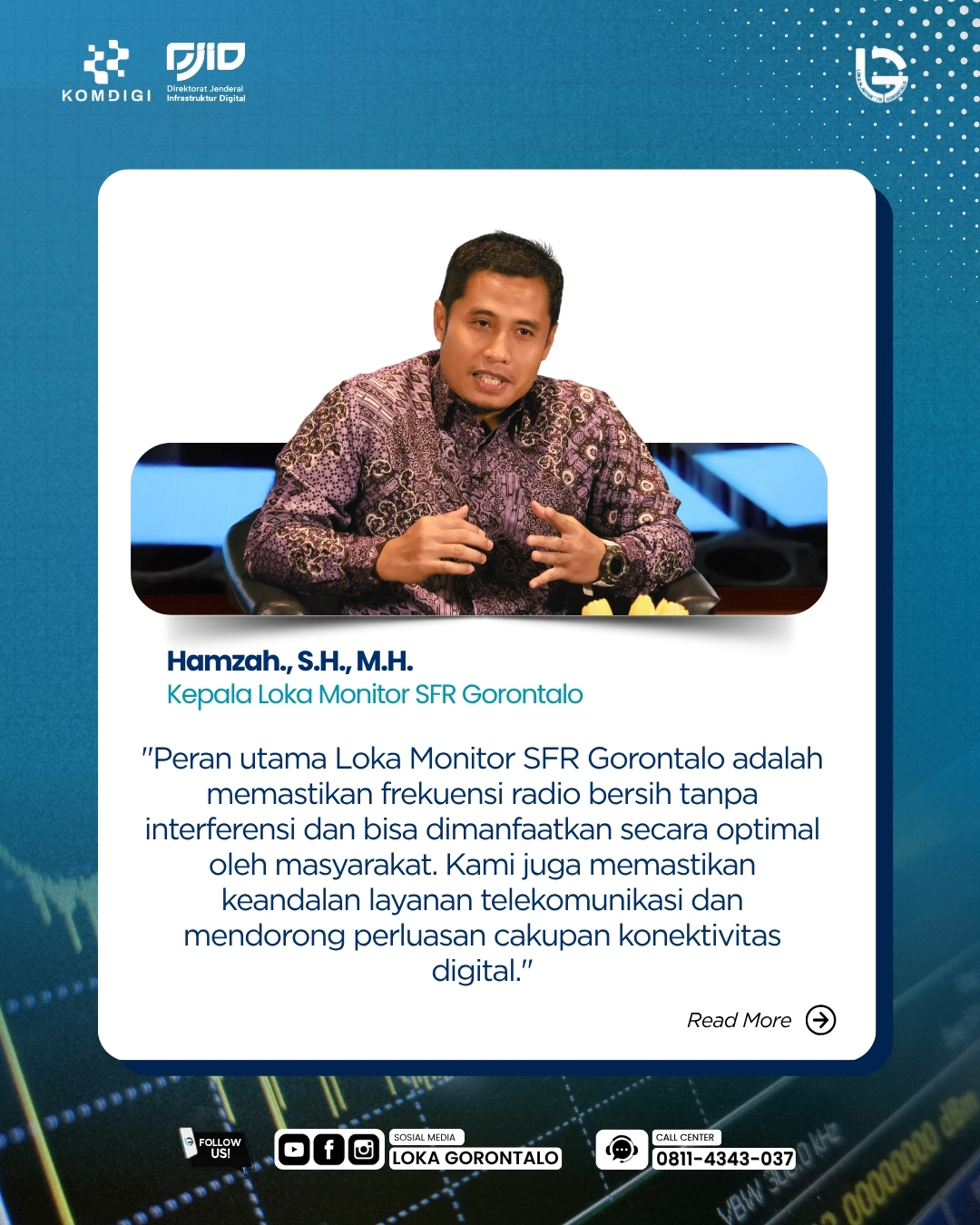Sementara itu, Hamzah, S.H., M.H. menambahkan bahwa peran utama Loka Monitor SFR Gorontalo adalah memastikan frekuensi radio tetap bersih dari interferensi agar dapat dimanfaatkan secara optimal oleh masyarakat. Ia juga menegaskan pentingnya kerja sama berbagai pihak untuk mendukung konektivitas digital yang semakin luas.
