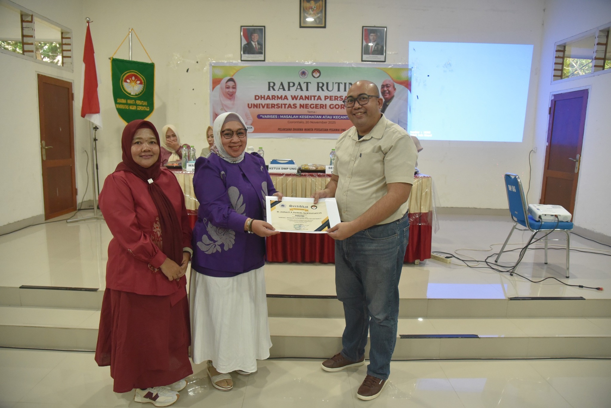 Gorontalo, 20 November 2025 – Pada tanggal 20 November 2025, perwakilan Dharma Wanita Persatuan (DWP) Fakultas Hukum Universitas Negeri Gorontalo (FH UNG) turut berpartisipasi dalam kegiatan Rapat Rutin yang diadakan oleh Dharma Wanita Persatuan Universitas Negeri Gorontalo. Acara ini mengangkat tema “Varises: Masalah Kesehatan atau Kecantikan?”