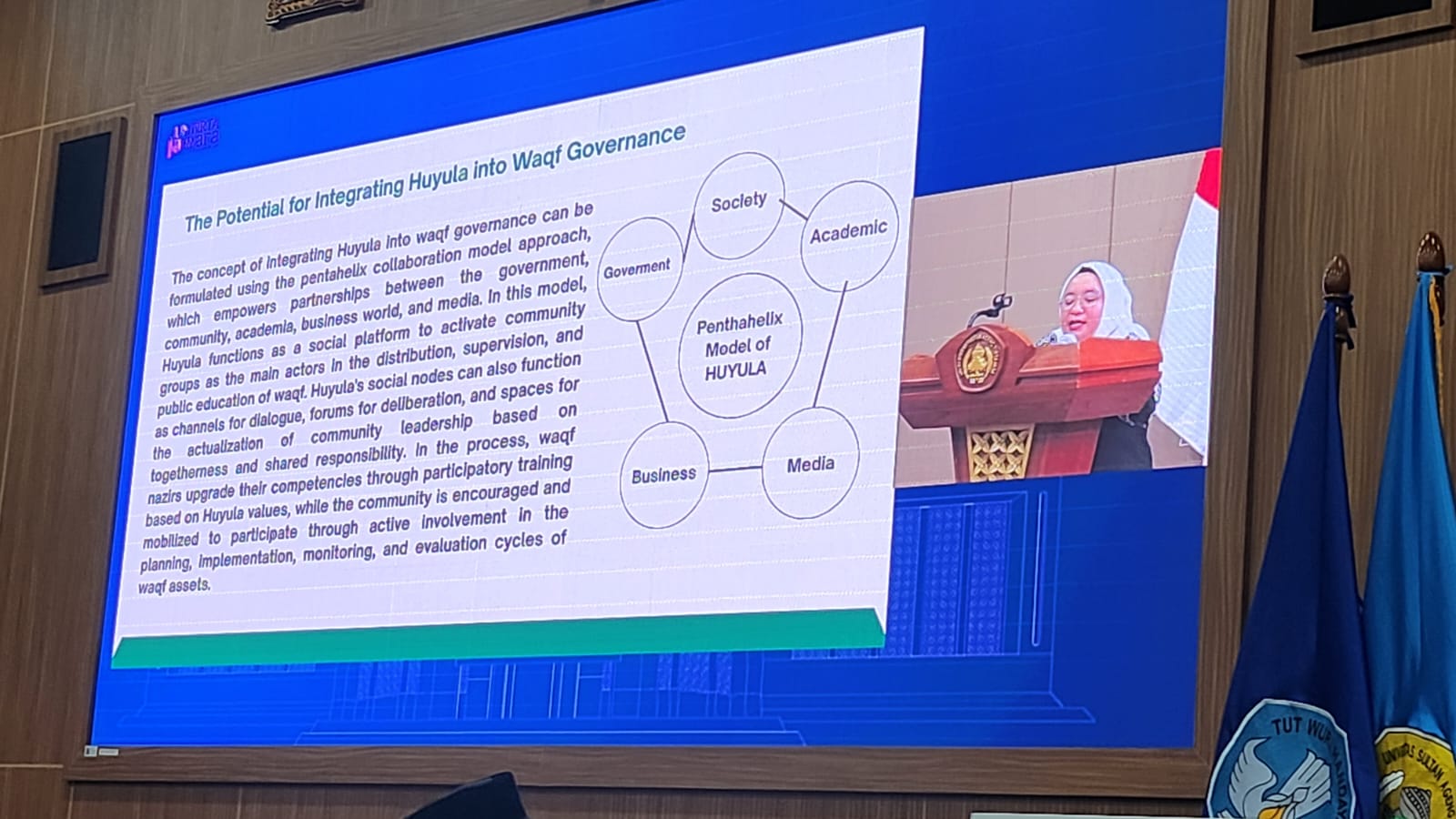 Dalam paparannya, ia menjelaskan bahwa konsep Huyula, sebagai nilai kearifan lokal masyarakat Gorontalo yang menekankan semangat kebersamaan dan gotong royong, memiliki potensi besar untuk diterapkan dalam sistem tata kelola wakaf modern.