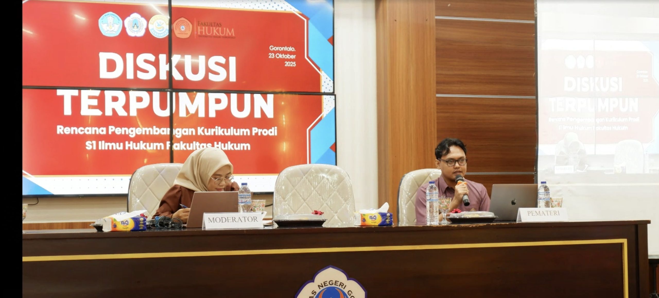Dalam pengantarnya, moderator menyampaikan bahwa pengembangan kurikulum berbasis Outcome Based Education (OBE) menjadi kebutuhan mendesak agar lulusan FH UNG tidak hanya unggul secara teoretis, tetapi juga memiliki kompetensi praktis dan mampu menjawab kebutuhan dunia kerja yang dinamis. Ketua Tim Pokja, Muhammad Rivaldi Moha, kemudian memaparkan rancangan awal pengembangan kurikulum yang mendapatkan tanggapan dari berbagai pihak, baik dari instansi pemerintah, lembaga hukum, media, maupun pegiat masyarakat sipil.