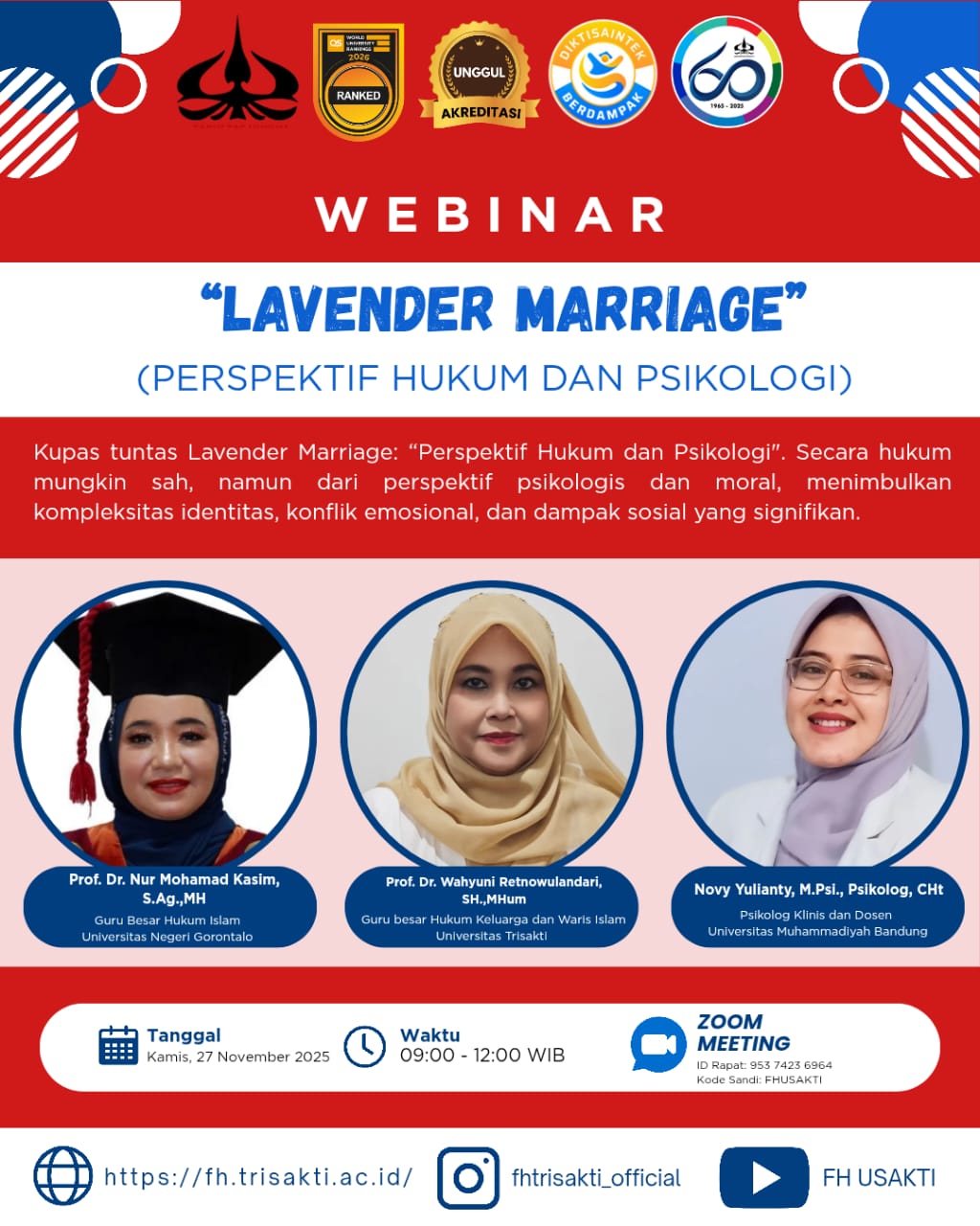 FH UNG Mengajak Sivitas Akademika Mengikuti Webinar Nasional “Lavender Marriage: Perspektif Hukum dan Psikologi”