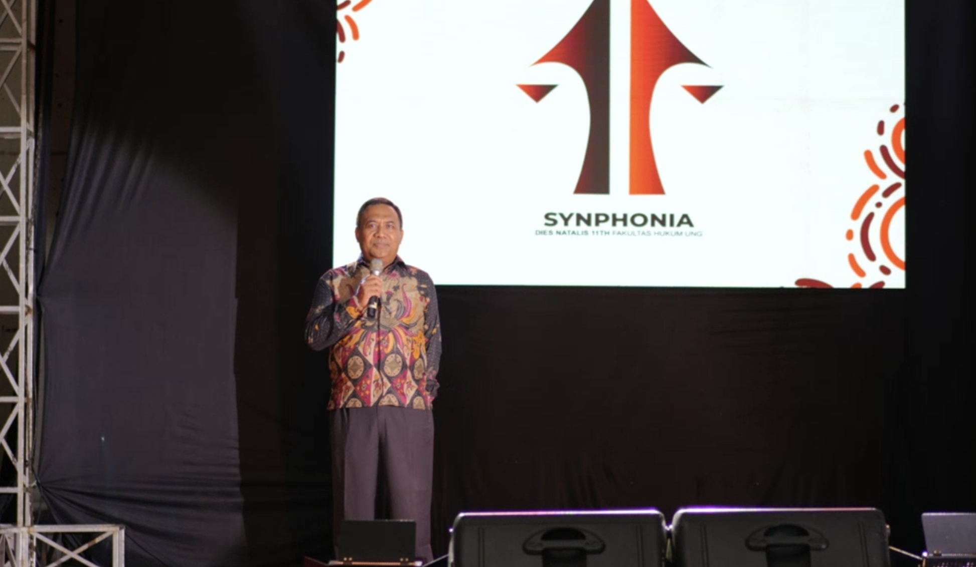 Gorontalo, 11 Oktober 2025 — Fakultas Hukum Universitas Negeri Gorontalo (FH UNG) sukses menggelar Malam Puncak Dies Natalis ke-11 dengan tema “Synphonia: Bersinergi, Berdedikasi, Berprestasi”, Sabtu malam (11/10/2025) di Gedung Auditorium Rektorat UNG. Acara berlangsung dengan khidmat dan penuh semangat kebersamaan, dihadiri oleh seluruh civitas akademika, alumni, serta mahasiswa Fakultas Hukum UNG.
