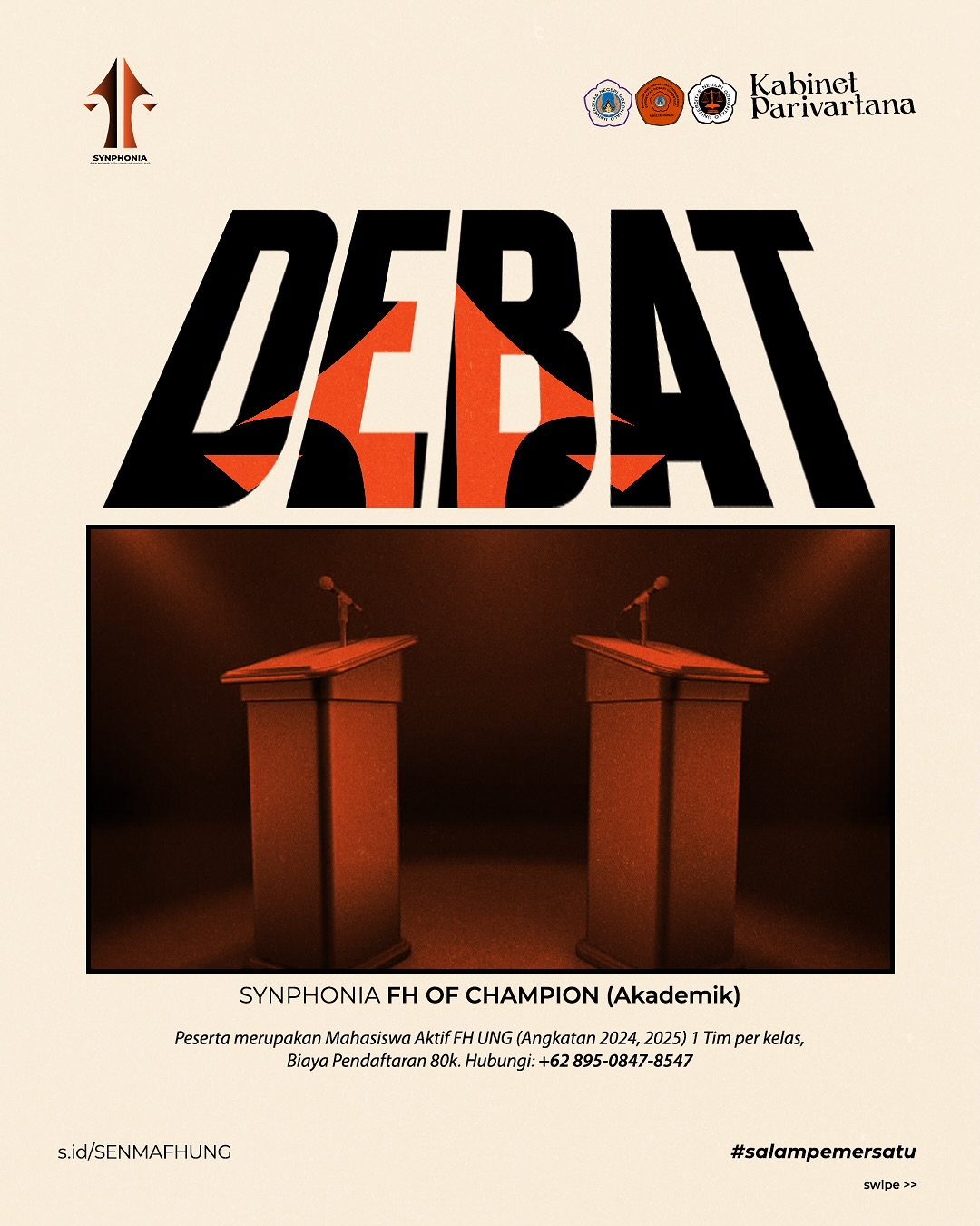 GORONTALO — Dalam rangka Dies Natalis ke-11 Fakultas Hukum Universitas Negeri Gorontalo, Senat Mahasiswa FH UNG melalui Kabinet Parivartana sukses menyelenggarakan pertandingan debat akademik Synphonia FH of Champion 2025, Rabu (11/9/2025).