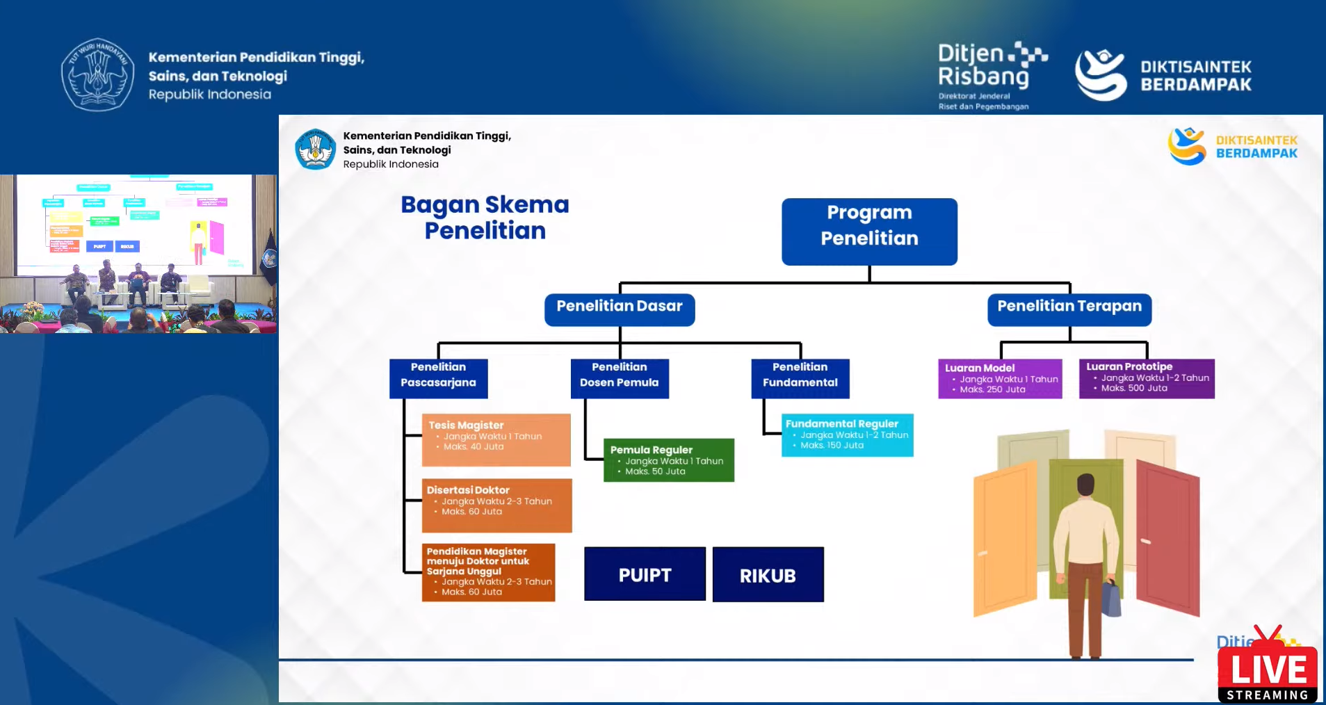 Dalam pengantarnya, M. Fauzan Adziman, Direktur Jenderal Riset dan Pengembangan, menyampaikan bahwa program ini merupakan langkah strategis untuk memperkuat integrasi antara dunia riset, pendidikan tinggi, industri, dan masyarakat. Menurutnya, arah riset Indonesia ke depan harus mampu menjawab kebutuhan nyata bangsa, mendorong hilirisasi hasil penelitian, serta memastikan setiap inovasi memiliki nilai guna dan manfaat langsung bagi pembangunan nasional.