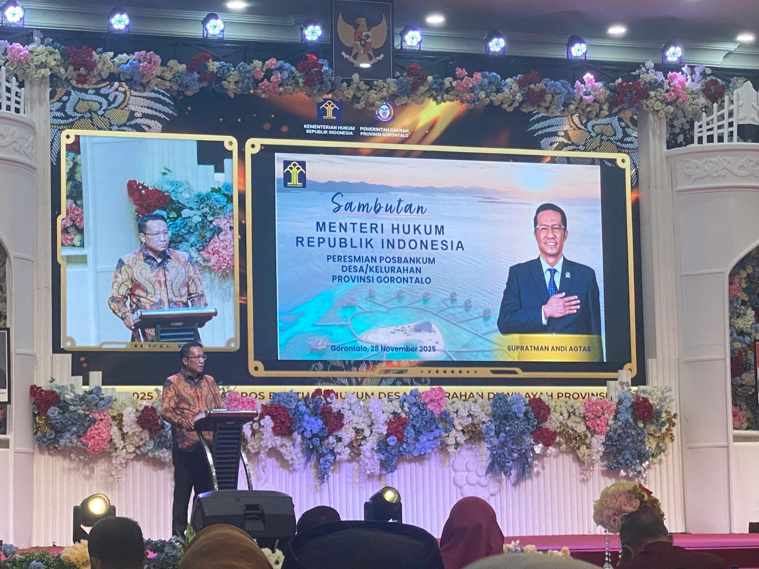 Lembaga Bantuan Hukum (LBH) Universitas Negeri Gorontalo (UNG) menyambut baik peresmian Pos Bantuan Hukum (Posbankum) di seluruh desa dan kelurahan Provinsi Gorontalo. Acara peresmian yang dipimpin langsung oleh Menteri Hukum Republik Indonesia, Supratman Andi Agtas, ini diselenggarakan pada Jumat malam, 28 November 2025, di Azlea Convention Centre. Kehadiran LBH UNG dalam acara bersejarah ini diwakili oleh Direktur LBH UNG, Irlan Puluhulawa, S.H., M.H., yang berpartisipasi sesuai dengan undangan resmi yang ditujukan kepada Rektor Universitas Negeri Gorontalo dari Kantor Wilayah Kementerian Hukum (Kanwil Kumham) Gorontalo.