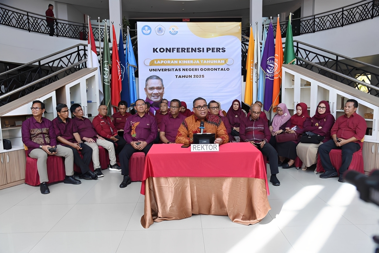 Dalam konferensi pers tersebut, Rektor UNG Prof. Dr. Ir. Eduart Wolok, S.T., M.T., IPU., ASEAN.Eng. memaparkan berbagai capaian strategis UNG sepanjang tahun 2025. Tahun ini menjadi momentum penting bagi UNG dalam memperkuat kepercayaan publik, ditandai dengan jumlah mahasiswa yang mencapai 41.977 orang dari berbagai jenjang pendidikan dan berasal dari seluruh provinsi di Indonesia.