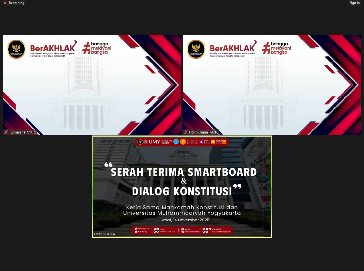 Meskipun acara dipusatkan secara luring di Gedung KH. Ibrahim UMY, partisipasi FH UNG tetap berlangsung intensif berkat jejaring kerja sama fasilitas Video Conference yang dimiliki oleh MKRI. Sebagai salah satu mitra strategis MKRI yang memiliki fasilitas Vicon, FH UNG bersama dengan perguruan tinggi mitra lainnya di seluruh Indonesia terhubung secara real-time untuk menyimak materi dari narasumber utama.