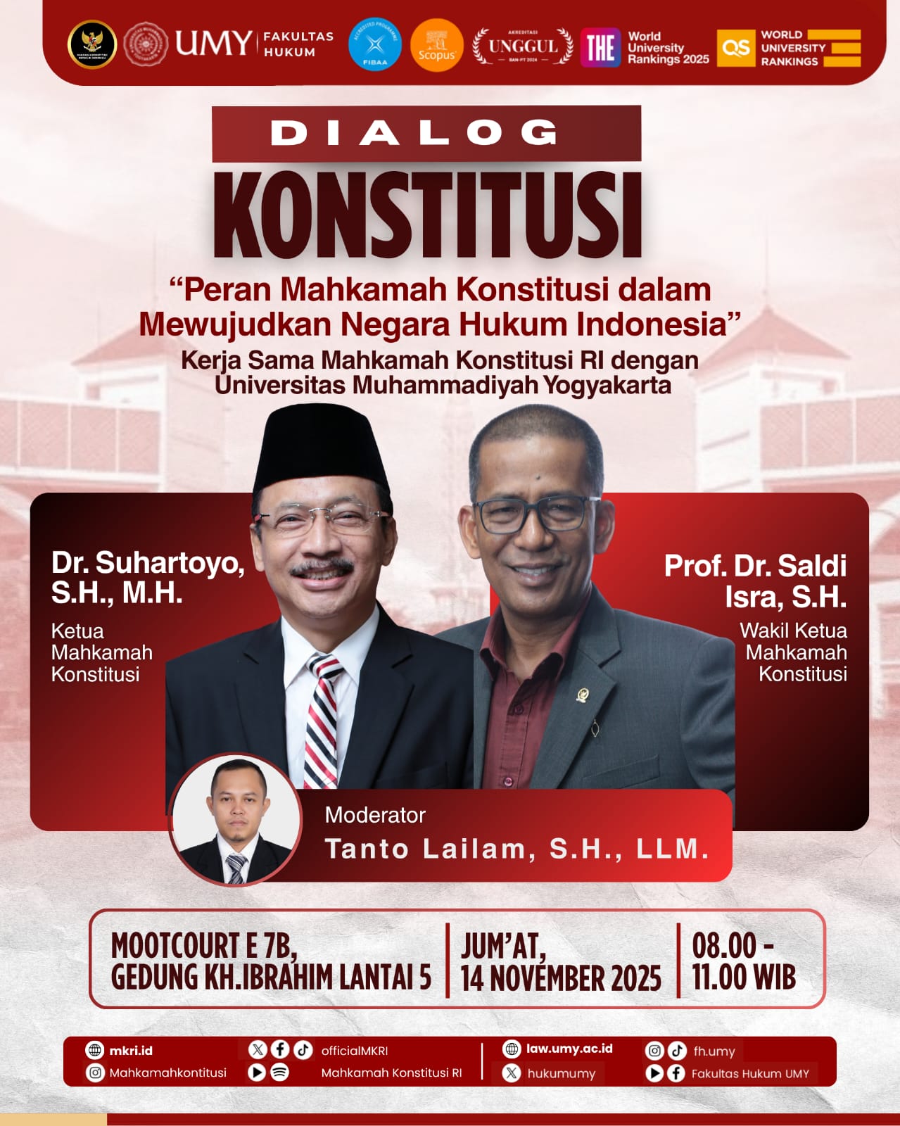 Kegiatan yang merupakan hasil kerja sama antara Mahkamah Konstitusi RI dengan Universitas Muhammadiyah Yogyakarta (UMY) ini mengusung tema sentral “Peran Mahkamah Konstitusi dalam Mewujudkan Negara Hukum Indonesia”.