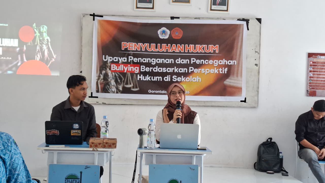 Gorontalo — Senat Mahasiswa Fakultas Hukum Universitas Negeri Gorontalo (SENMA FH UNG) kembali menunjukkan komitmennya dalam membangun kesadaran hukum di masyarakat melalui penyelenggaraan kegiatan penyuluhan hukum bertema “Upaya Pencegahan dan Penanganan Bullying Berdasarkan Perspektif Hukum di Sekolah.” Kegiatan ini merupakan bagian dari program akademik mahasiswa Fakultas Hukum yang dilaksanakan pada Kamis, 16 April 2026.
