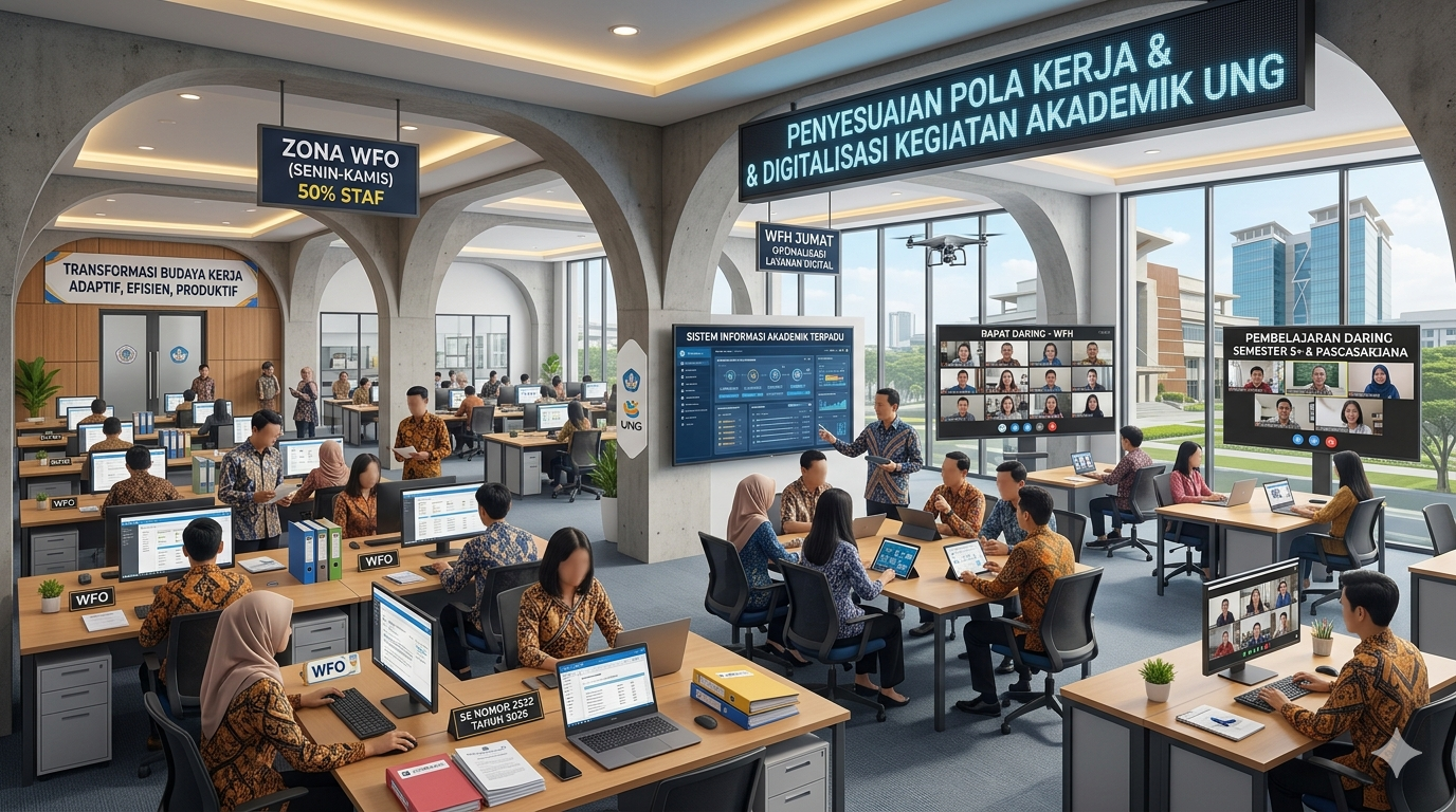 Kebijakan ini memastikan bahwa seluruh Tenaga Kependidikan (Tendik) tetap memberikan pelayanan prima dengan sistem Work from Office (WFO) dan Work from Home (WFH) secara bergantian, guna mendukung efisiensi energi dan transformasi digital kampus.